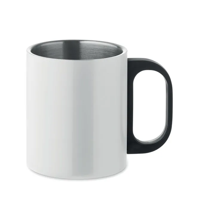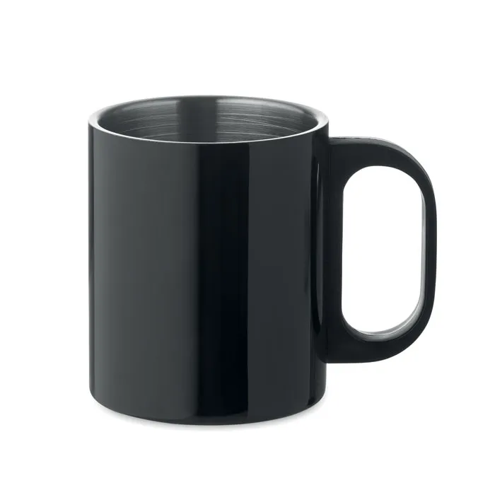 Caneca de parede dupla de aço inoxidável com cabo PP. Capacidade: 300 ml.Caneca de parede dupla 300 ml