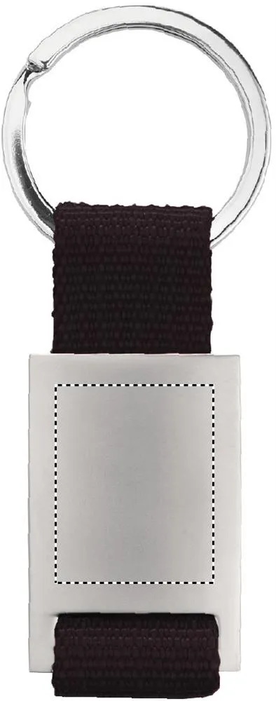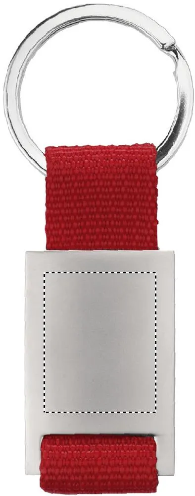 Porta-chaves em liga de metal com tira de cor em poliéster.Porta-chaves retangular