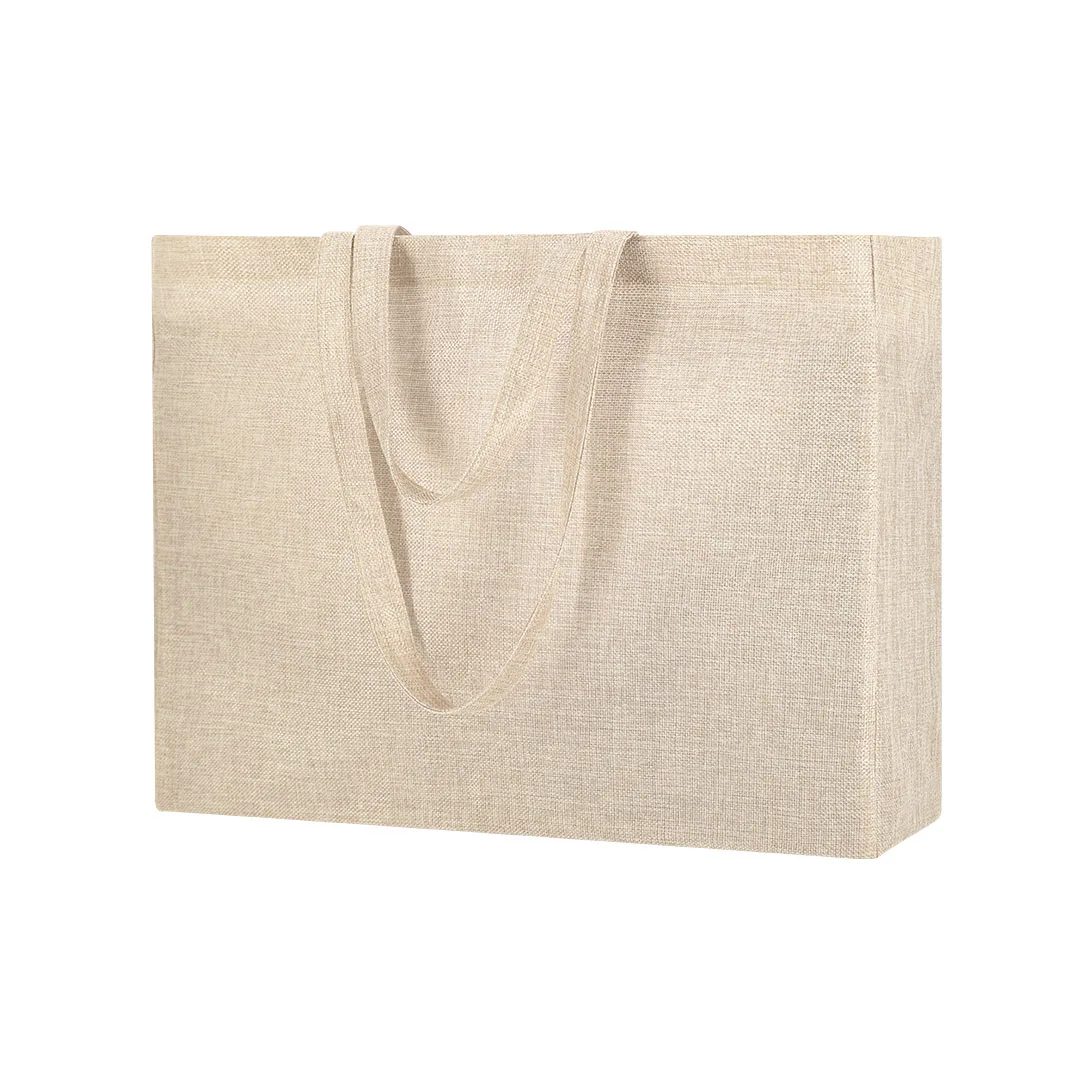 Bolsa fabricada em suave e resistente poliéster, ideal para personalização mediante impressão por sublimação. Com fundo e alças longas reforçadas. Resistência até 8 kg de peso.Poliéster