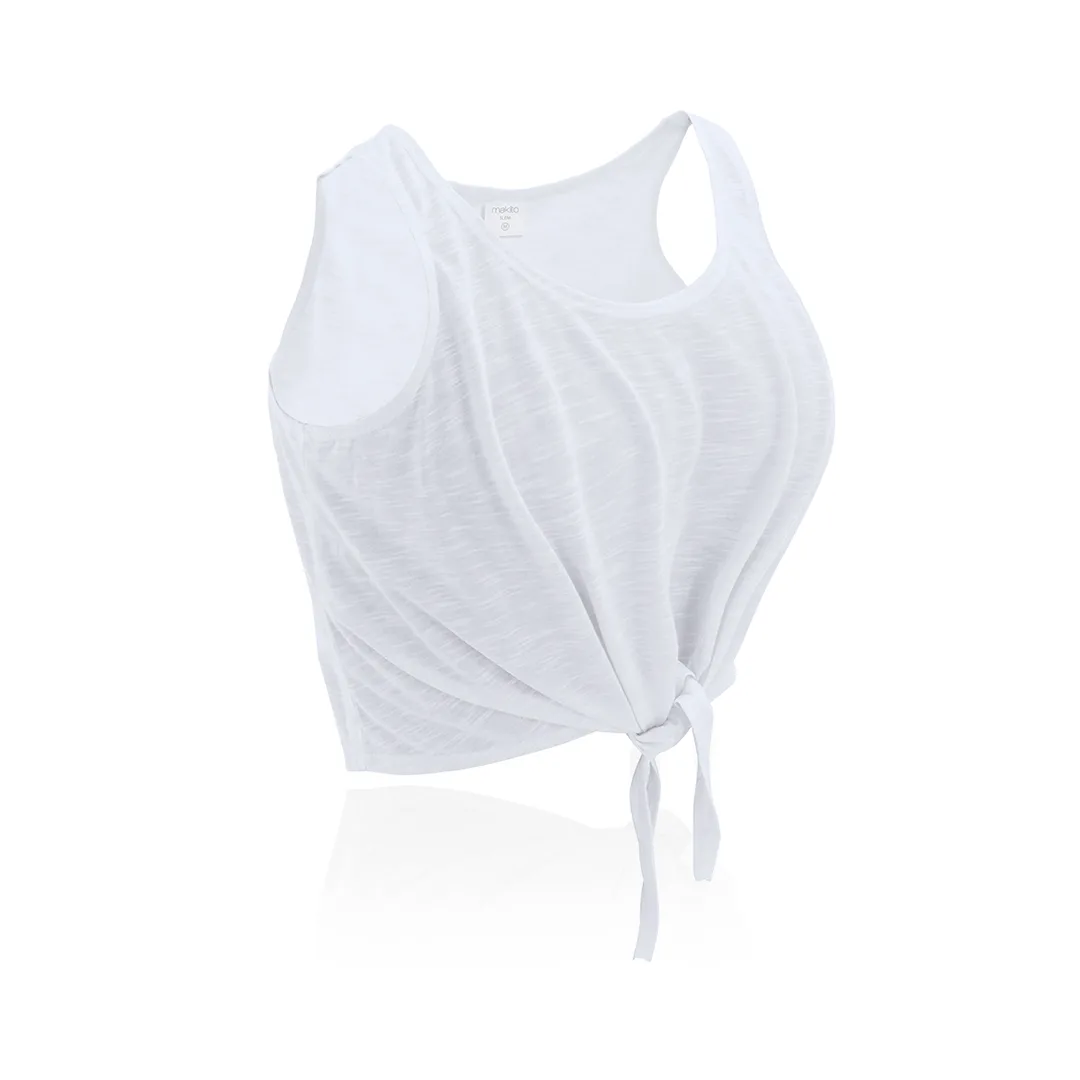 Ref: BEC0274MOT-shirt para raparigas em poliéster macio 130g/m2. Com design tirha e com fecho de nó dianteiro. Disponível em branco e uma vasta gama de cores fluorescentes brilhantes. Tamanhos S, M, L.