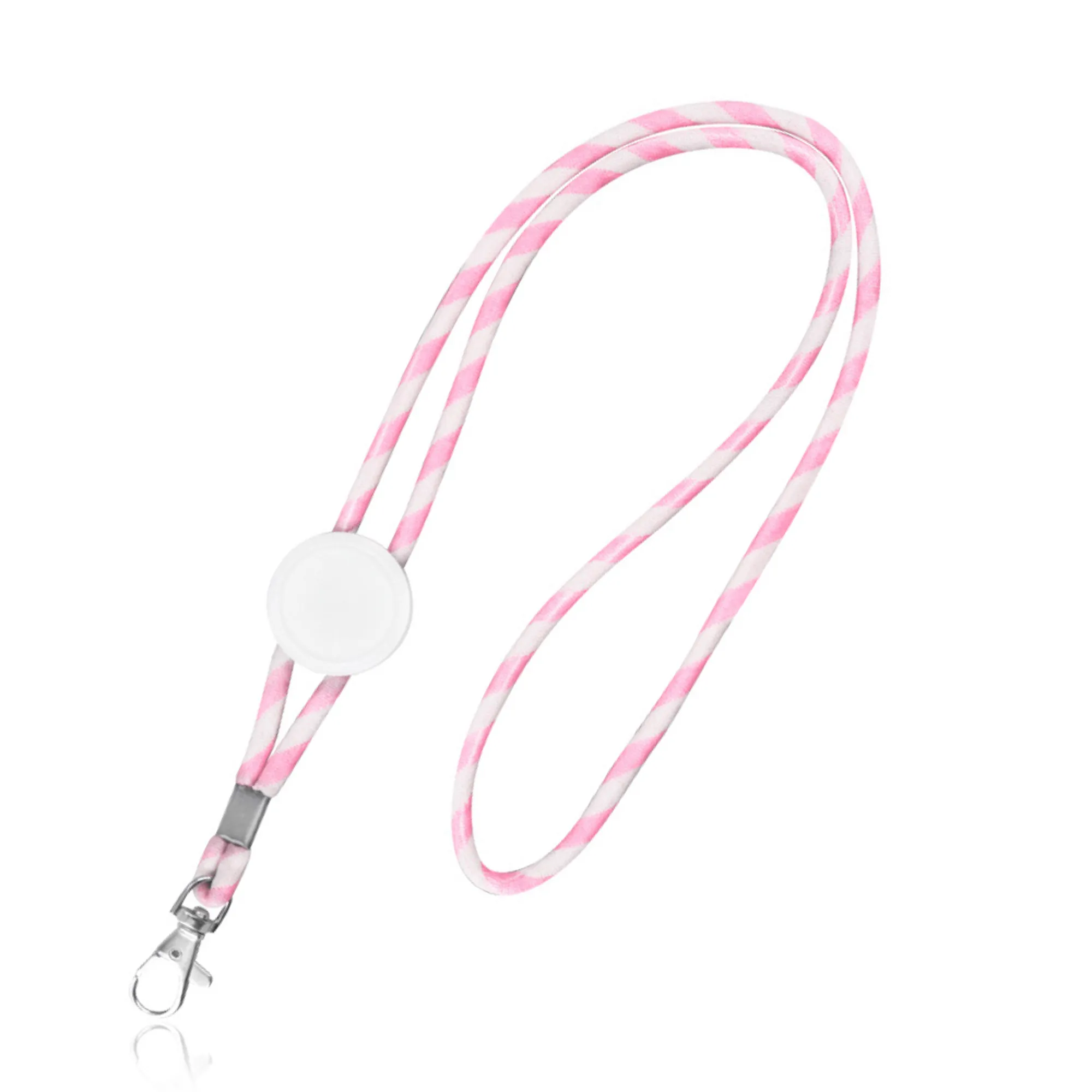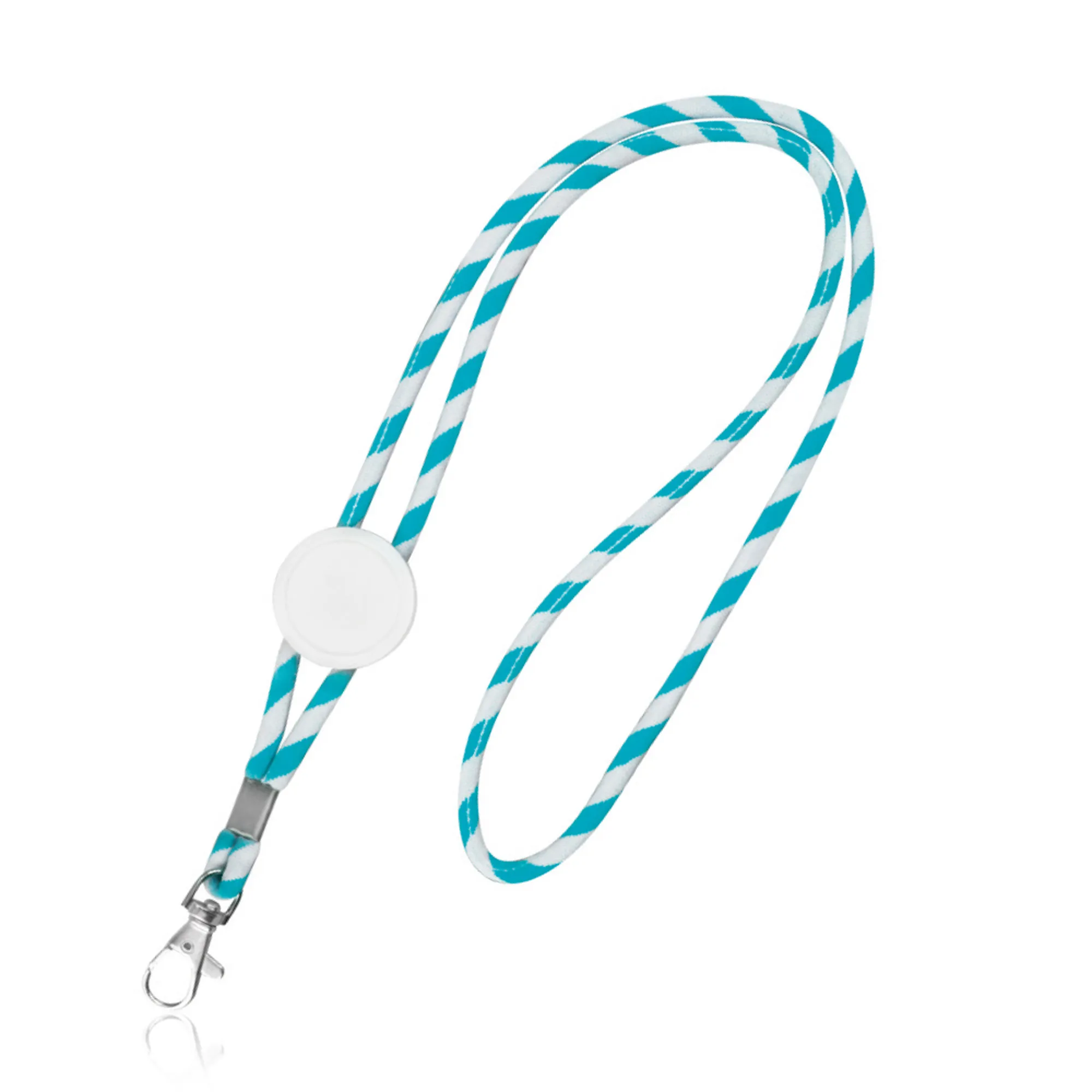 Lanyard tubular em terylene, ajustável e mosquetão. Lanyard com um padrão de riscas largas que variam em combinação entre o branco e outras cores. O ajustável em plástico foi especialmente desenhado para personalização através de resina. Adicione o seu logotipo, slogan ou design exclusivo para criar uma peça única que reflete a identidade da sua marca. Para tornar a personalização mais fácil, pode adquirir a nossa resina 370487, criada especialmente para este ajustável.Lanyard tubular em terylene com ajuste e mosquetão