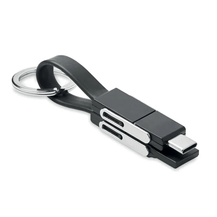 Porta-chaves com cabo de carga de 4 em 1. Entrada/saída: Tipo-C x2, Tipo-A, Micro USB.Porta-chaves com cabo 4 em 1