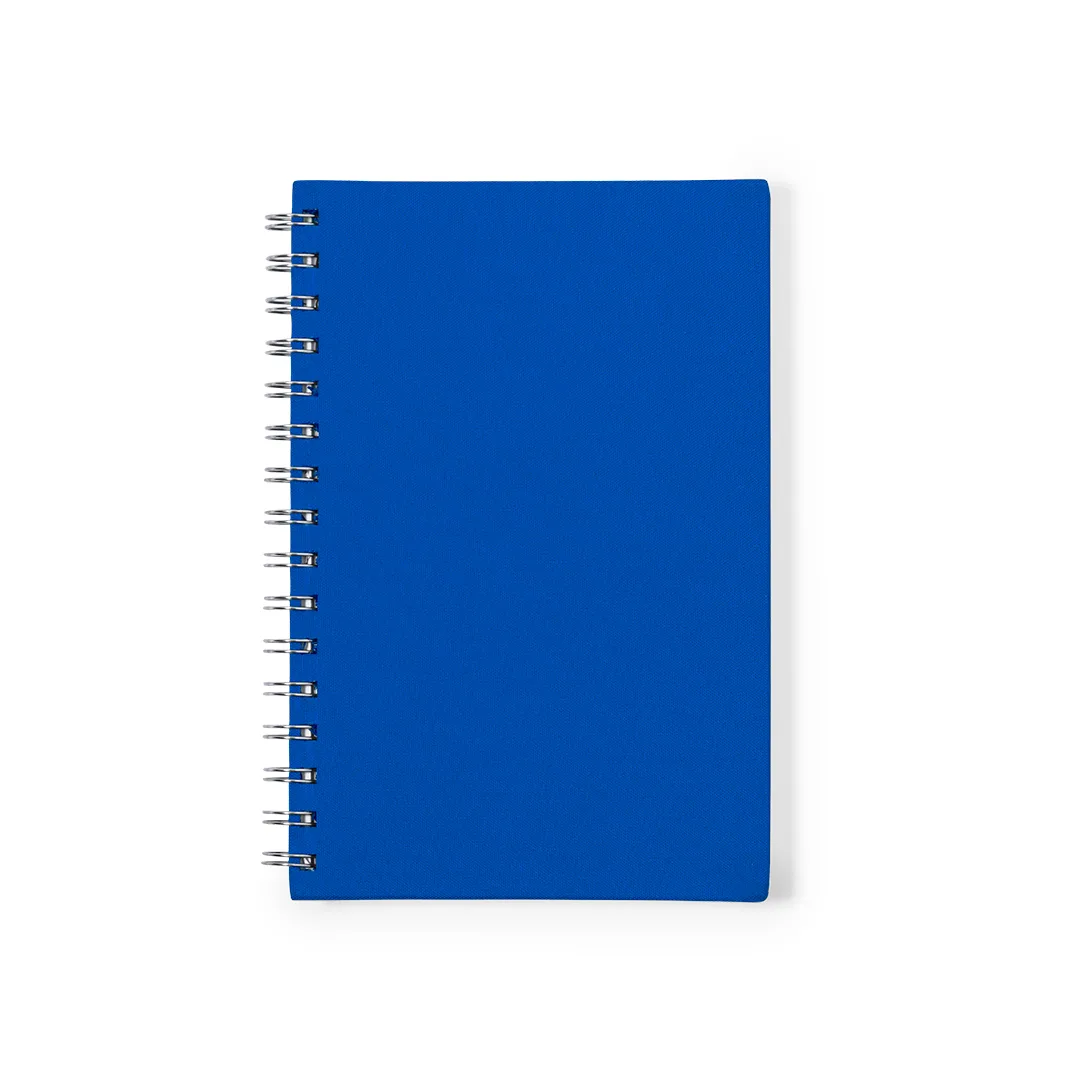 Bloco de notas A5 com capas duras em resistente material RPET 300D. Interior com 100 folhas pautadas e 100% recicladas microperfuradas. Inclui distintivo RPET na contracapa. Apresentado em bolsa individual reciclada.O material RPET é elaborado a partir de plástico reciclado, para assim fomentar a reutilização de residuos plásticos e ajudar na sustentabilidade do planeta.Poliéster 300D RPETCapa Rígida. 100 Folhas