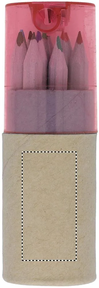 12 peças de lápis de cor em papel reciclado. Tampa transparente com afia-lápis.12 lápis de cor