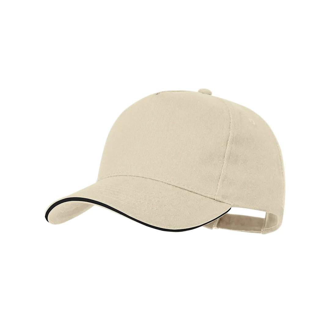 Boné de 5 painéis em material algodão penteado de 250g/m2. Numa variada gama de cores vivas, com sanduíche colorida e acolchoado na viseira. Orifícios de ventilação bordados e fecho ajustável de fivela.100% Algodão Penteado5 Painéis. Fecho Fivela
