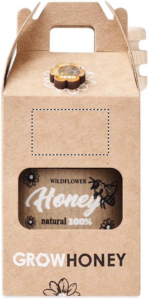 Frasco de mel de flores silvestres (50g) com uma víbora de mel de madeira. Vem numa caixa de papel kraft. Incluindo sementes de flores de abelhas. Fabricado na UE.Set mel flores silvestres 50gr