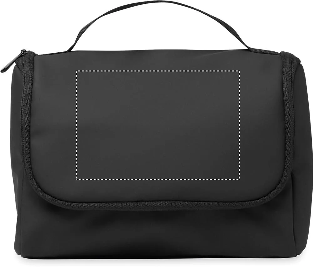 Saco organizador de cosméticos em PU macio com gancho para pendurar e forro em RPET 210D. Um compartimento principal grande com um compartimento interior de rede com fecho de correr e 1 compartimento de rede.Saco para cosméticos em PU