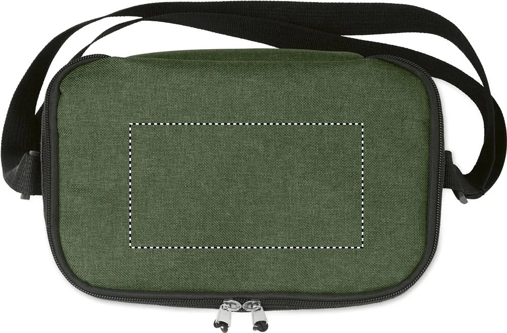 Saco refrigerador para 6 latas em 2 tons 600D RPET e bolso frontal. Material de isolamento: PEVA de 0,15 mm + espuma de 3 mm.Saco ref. 600D RPET para latas