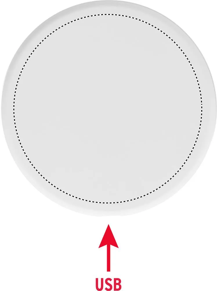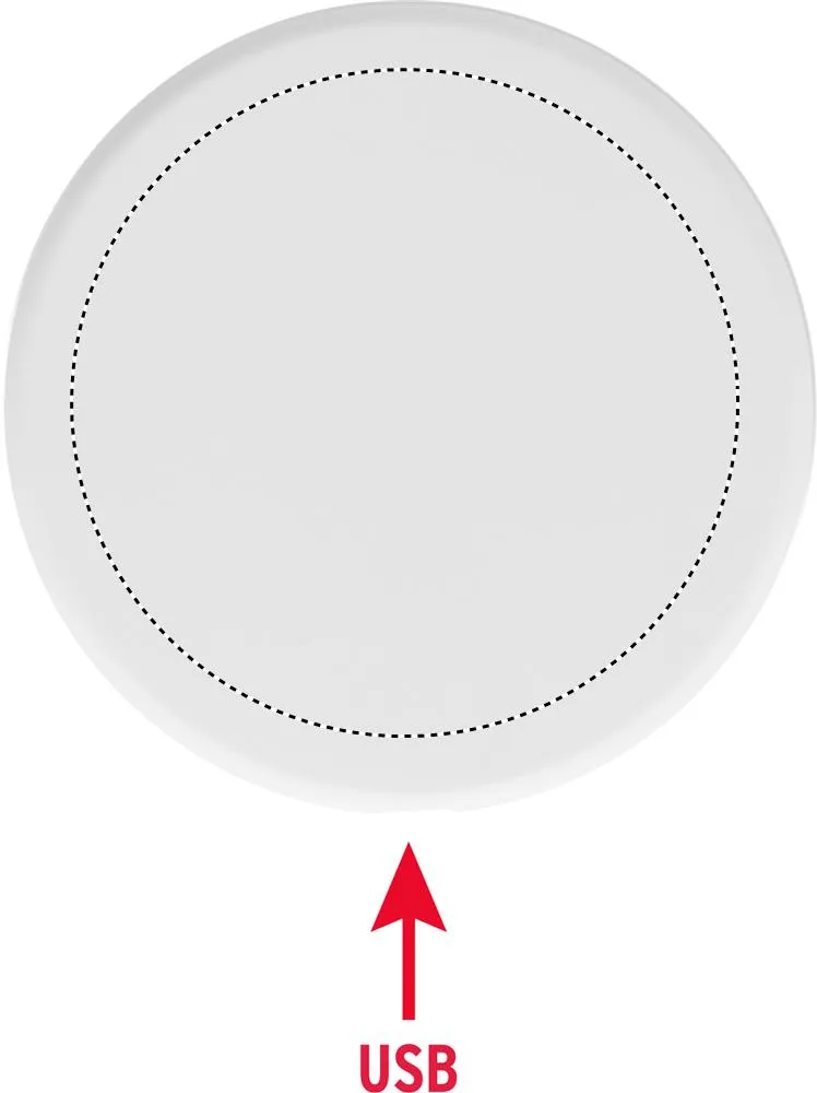Carregador sem fios ABS reciclado. Ligue-o ao seu computador, coloque o seu smartphone no dispositivo para começar a carregar. Saída: DC 9V/1.1A (10W) para carregamento rápido.Carregador sem fios