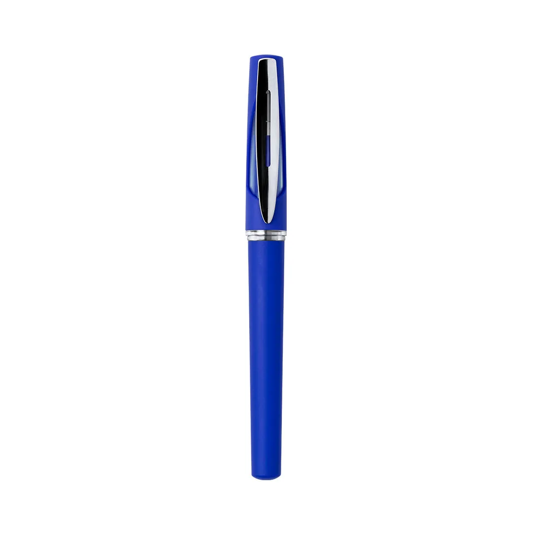 Rolo com capuz de design bicolor alegre com um corpo macio com acabamento em cores marcantes e acessórios em prata brilhante, com detalhes transparentes. Tinta gel azul.Carga Jumbo