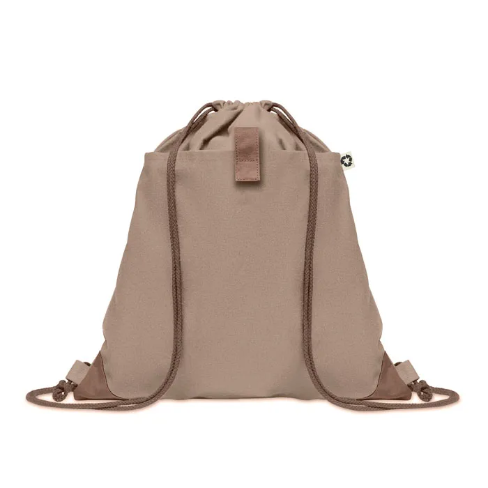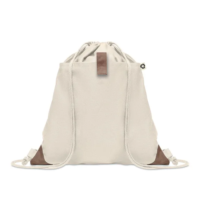Saco tipo cordão de algodão reciclado com cordões naturais 50% algodão e 50% algodão reciclado. 220 gr / m².Saco algodão reciclado