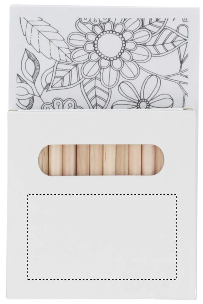 Conjunto de desenho para adultos com 10 cartões e 12 lápis de cor numa caixa de papel reciclado.Conjunto de desenho adulto