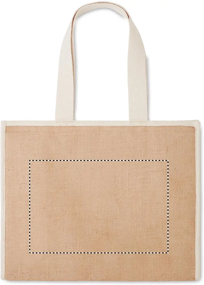 Esta sacola de compras de juta tem alças longas, um interior laminado para manter as coisas frescas e um fecho de velcro. A frente tem um bolso de canvas e uma correia de algodão para itens menores. Esta bolsa de juta é perfeita para as compras diárias. Esta sacola de juta tem uma longa vida útil, o que a torna uma ótima alternativa às sacolas plásticas descartáveis. Este produto tem a certificação OEKO-TEX® STANDARD 100.Saco refrigerante lona e juta