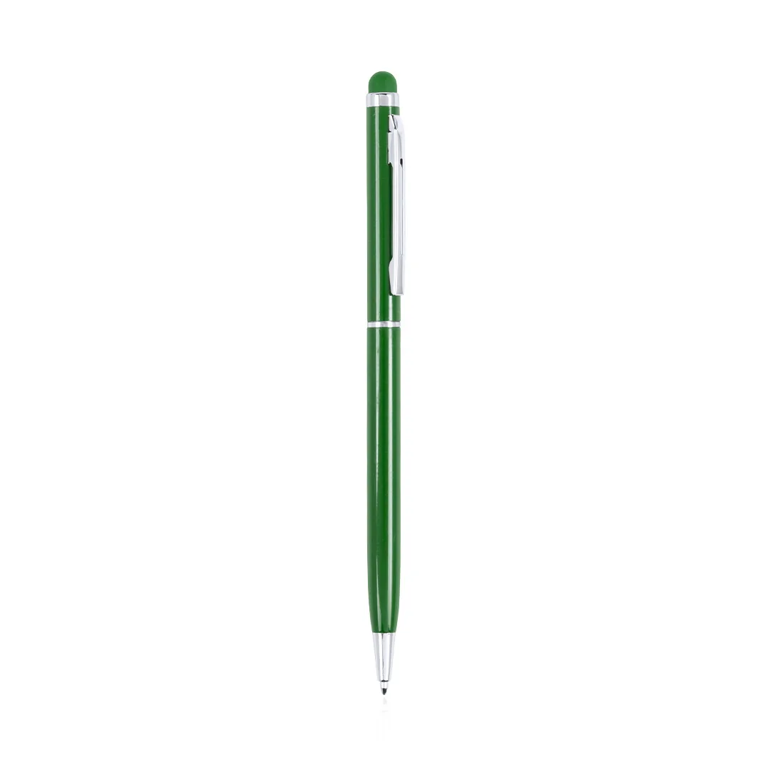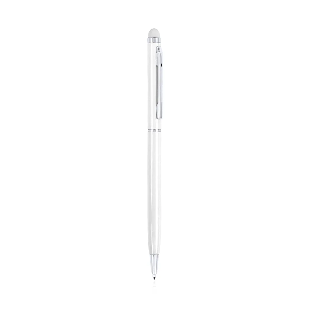 Caneta de bola de ponteiro com mecanismo de torção e corpo de alumínio ultrafino em um acabamento metálico liso em cores variadas e caneta de cores combinando. Detalhes e anéis na cor prateada. Tinta azul.Alumínio