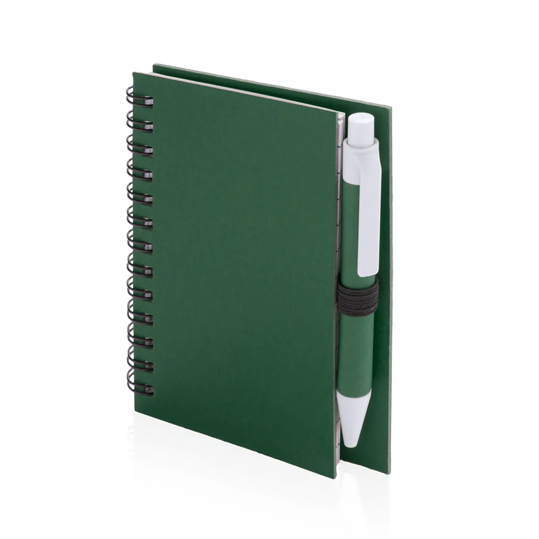 Ref: BEC0764MOAnel no caderno com tampas de toque suave em papelão resistente e caneta de bola reciclada em papelão reciclado em cores. Corretamente colorido, 50 folhas com layout listrado e com o suporte da caneta na tampa traseira.