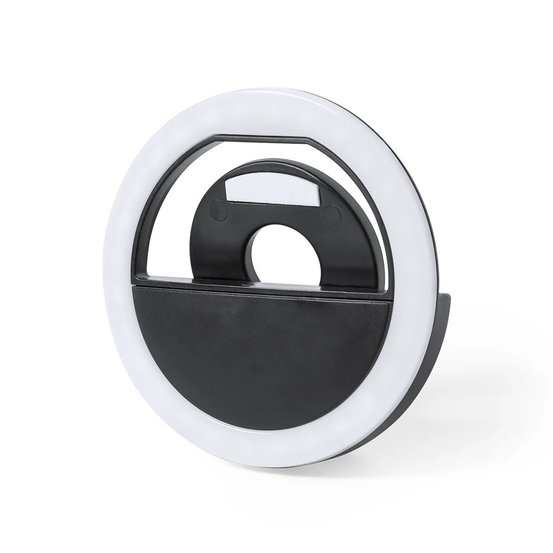Anel de luz led com ajuste para smartphone, fabricado em resistente ABS. 28 leds, com 3 níveis de intensidade e recarregável por USB (cabo Micro USB incluído). Apresentado em atrativa caixa de design. Disponível manual em espanhol e inglês.28 Leds. 3 Posições de Luz. Bateria 80 mAh