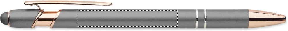 Caneta styllus em alumínio reciclado com detalhes em ouro rosa. Tinta azul.Caneta com botão de pressão