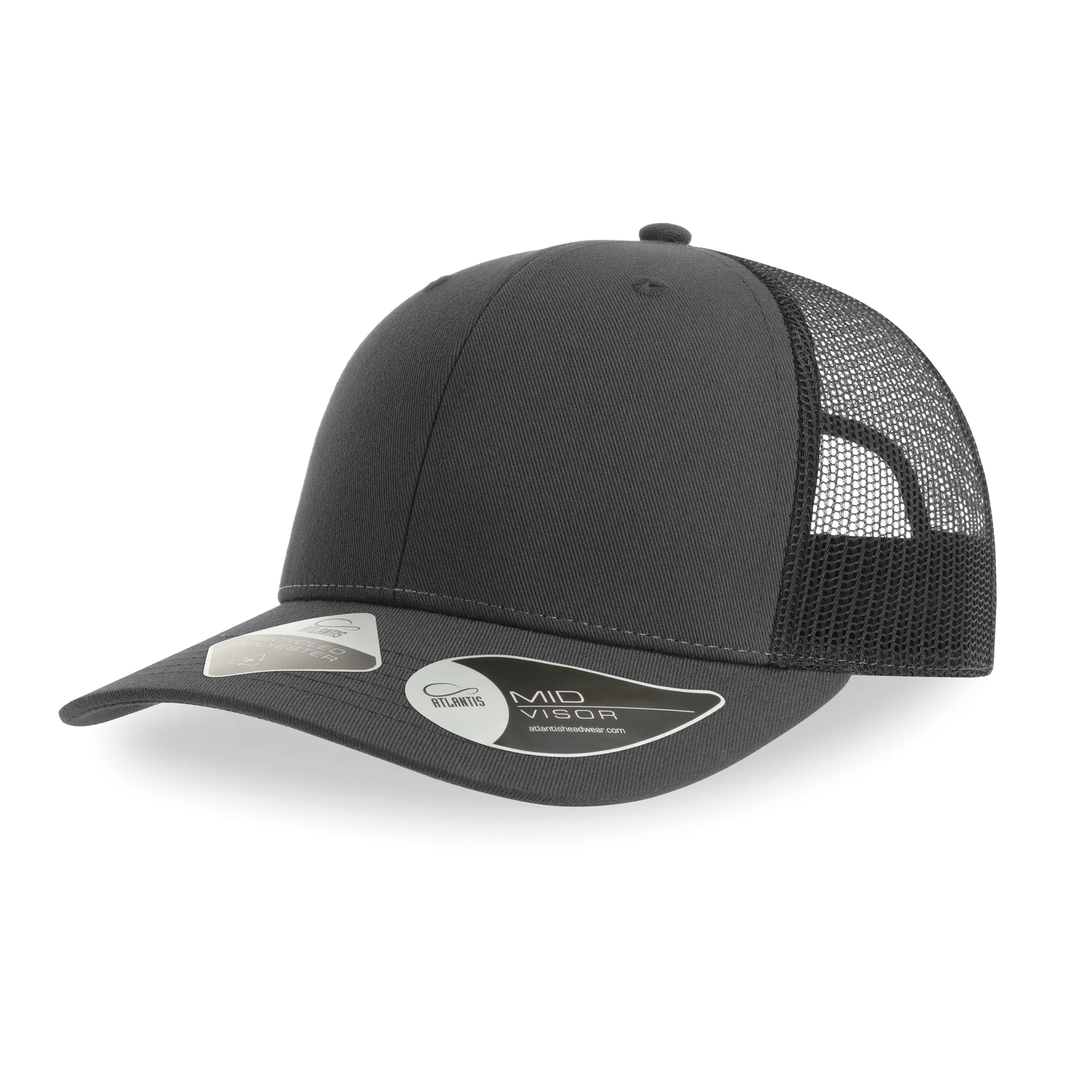 Boné trucker clássico, com 6 painéis, em Sarja de Poliéster reciclado. Malha traseira em poliéster reciclado. 100% Poliéster reciclado certificado e fecho em PVC recicladoBoné Bryce, 100% Poliéster reciclado