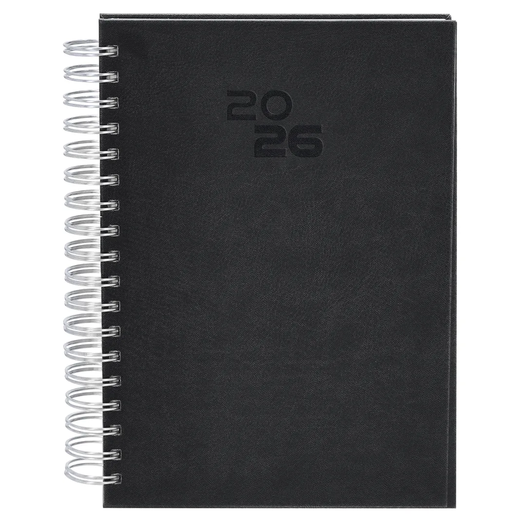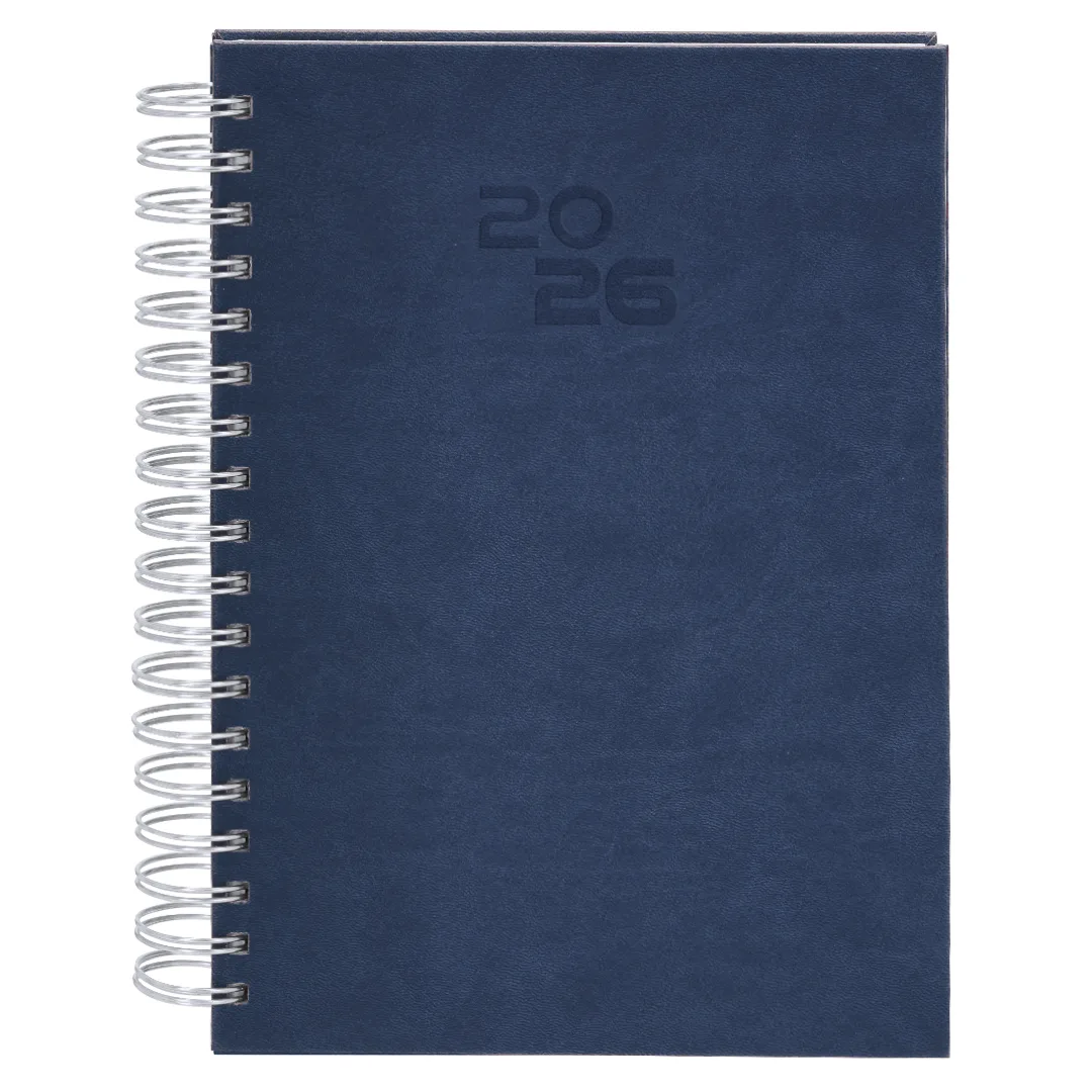 Ref: BEC09212MODiário tamanho B5 com anel de fichário em couro PU macio e resistente, com capas duras. Inclui uma caixa de apresentação em kraft.Design de página por dia e páginas com canto recortado. Em 2 idiomas: espanhol e inglês.
