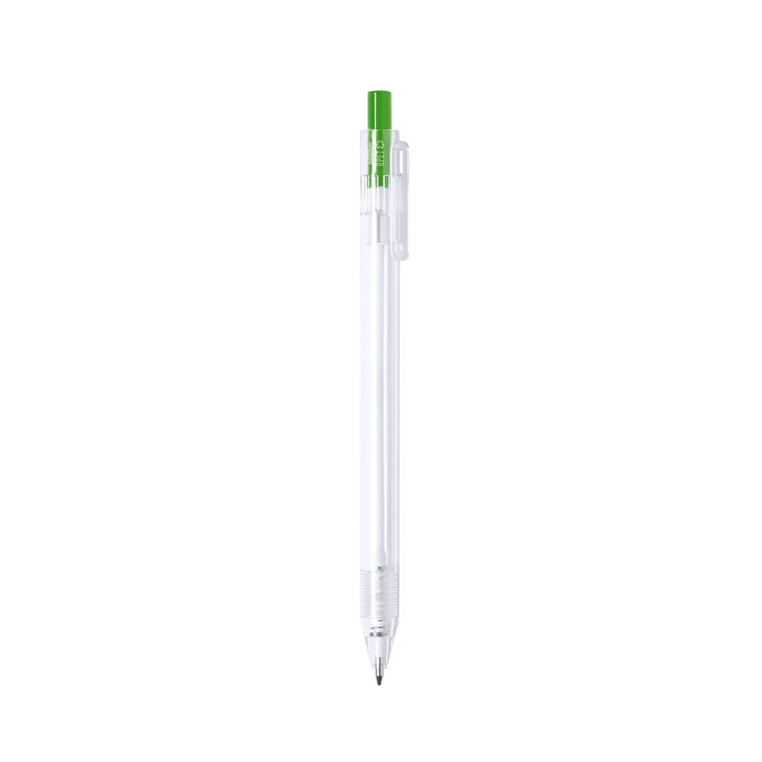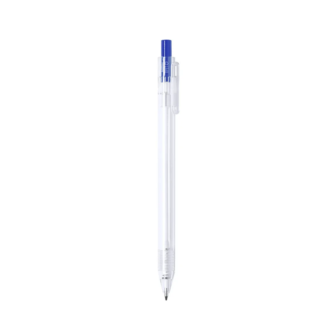 Esferográfica da linha nature em material RPET,feito a partir de plástico reciclado para promover a reutilização de resíduos plásticos e ajudar a sustentabilidade do planeta. De acabamento translúcido e com botão pulsador disponível numa vasta gama de cores, com distintivo RPET no corpo da caneta. Especialmente concebido para a impressão em tampografia, de mecanismo de botão pulsador e com tinta azul.RPET