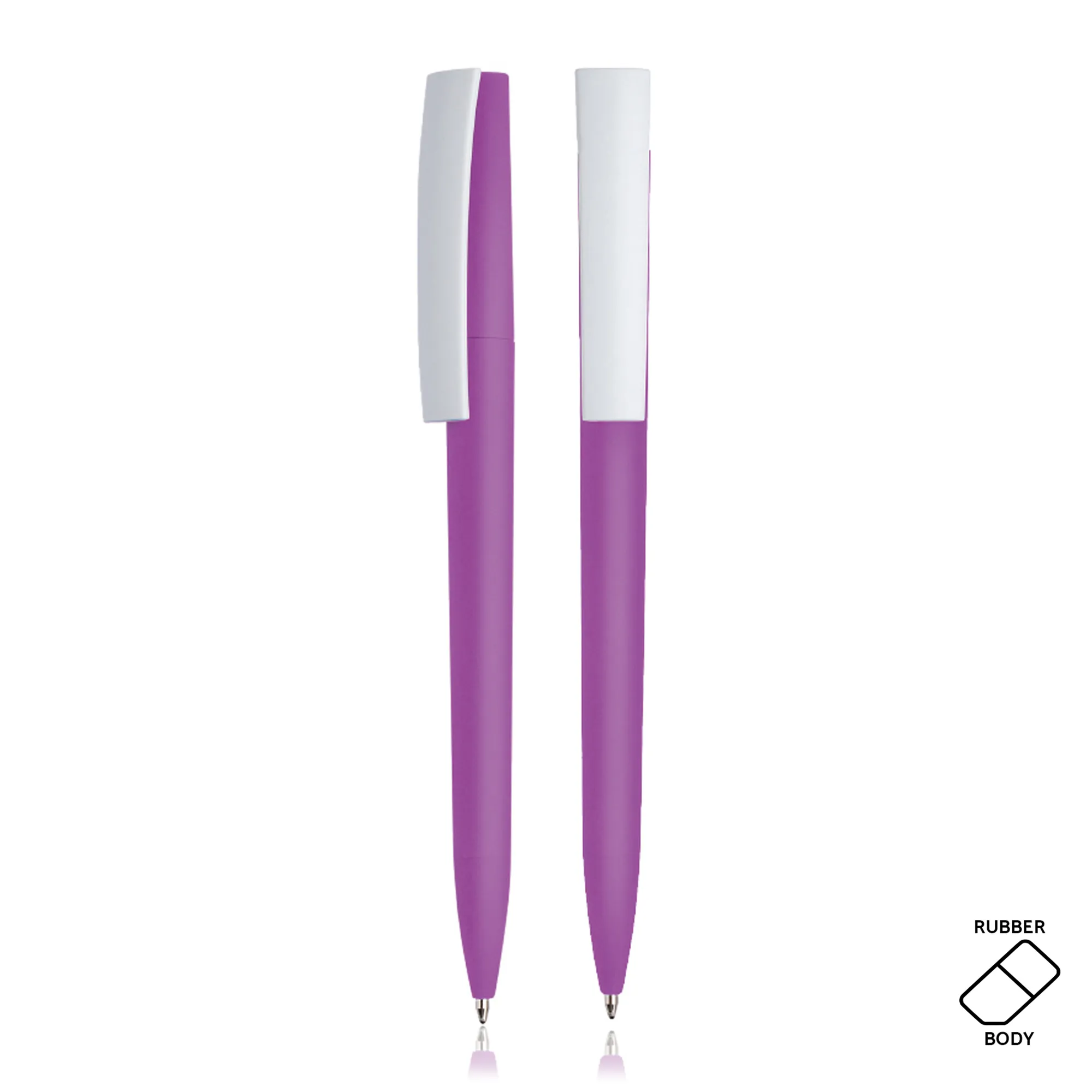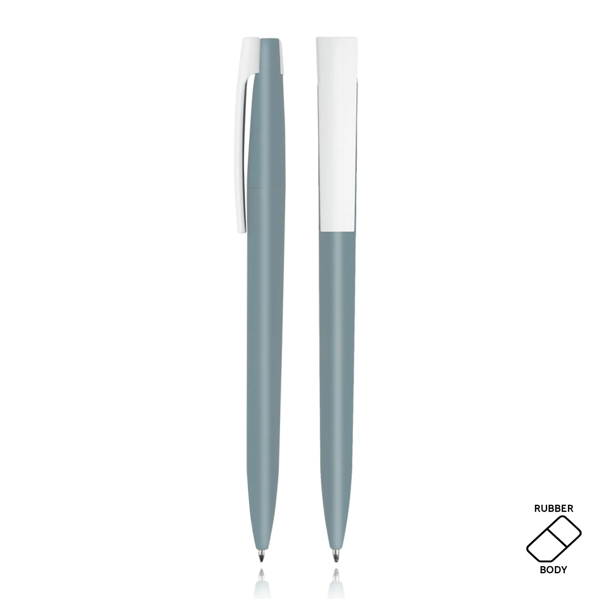 Esferográfica em plástico, acabamento em borracha. Nesta esferográfica encontra um clip ideal para gravar a sua marca. Com sistema pulsar. Esta esferográfica é de escrita preta.Esferográfica em plástico, com acabamento em borracha