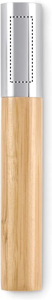 Caneta de metal com corpo com acabamento em bambu, em caixa cilíndrica com corpo em bambu e alumínio. Tinta azul.Esferográfica em tubo