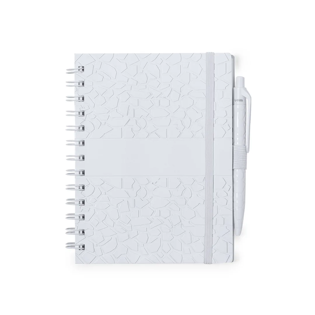Conjunto de caderno e esferográfica. Conteúdo: Caderno de argolas com capas rígidas fabricado à base de extratos de pedra em elegante acabamento de cor branco e suporte para a esferográfica. Capa de design único com relevo recortado. De 70 folhas de cor branca e disposição pautada, com distintivo Natural Stone.Esferográfica de linha nature e mecanismo pulsador. Corpo recortado fabricado com extratos de pedra natural, ajudando a reduzir a redução do uso de plásticos, além de proporcionar um acabamento suave e resistente. Em cor blanco e com distintivo Natural Stone na parte superior. De carga jumbo e em tinta azul.O material usado na elaboração do caderno é 100% reciclável e livre de cloro, com propriedades impermeáveis, altamente resistente e lavável, convertendo-se assim numa alternativa ecológica e sustentável frente ao papel convencional, cuja origem não é o tradicional nem provém das árvores.Apresentado em bolsa individual reciclada.Papel fabricado a partir de extratos de pedraCapa Rígida. 70 Folhas. Esferográfica Extratos de Pedra Natural/ ABS Incluída. Carga Jumbo