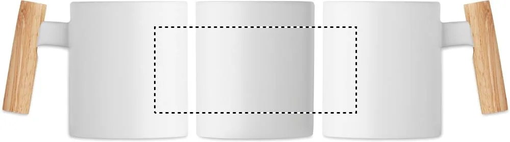 Caneca de cerâmica com pega de madeira. Capacidade: 320 ml. A tampografia não pode ser lavada na máquina de lavar louça. O transfer em cerâmica pode ser lavado na máquina de lavar louça. Embalagem individual em caixa de cartão branca.Caneca de cerâmica 320 ml