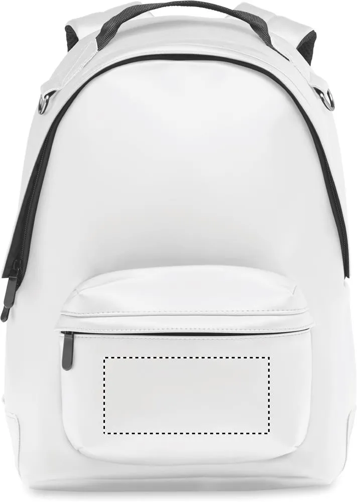 "Mochila para computador portátil de 15"" em PU macio com encosto almofadado e base reforçada. Bolso frontal com fecho de correr. O forro é em RPET 210D."Mochila portátil de 15" em PU