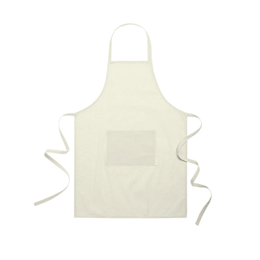 Avental de linha nature, elaborada em algodão reciclado. Com bolso frontal e alças ajustáveis, de corte abaixo do joelho. Disponível numa variada gama de cores, com o distintivo algodão reciclado na etiqueta.100% Algodão Reciclado