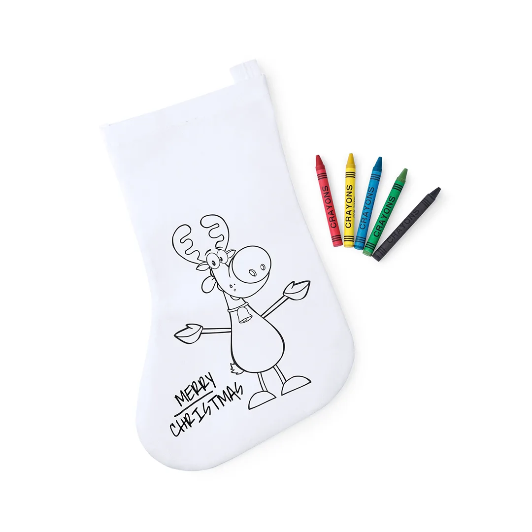 Meia branca não tecida especialmente concebida para ser pintada com lápis de cor. Inclui 5 lápis de cera cilíndricos em várias cores. Com fita adesiva e acabamento termoselado.Non-Woven5 Ceras Incluídas