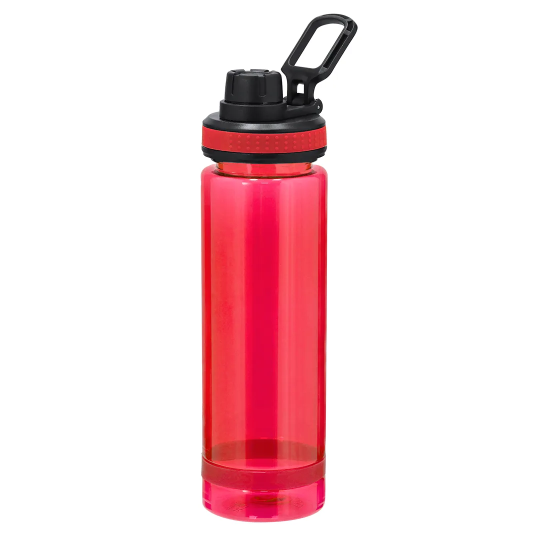 Garrafa RPET resistente com capacidade de 700 ml. Com acabamento fosco translúcido, esta garrafa inclui uma tampa de rosca preta para vedação ideal, uma tampa de rosca prática para beber e uma alça de transporte resistente. Livre de BPA.O material RPET é feito de plástico reciclado, promovendo assim a reutilização de resíduos plásticos e ajudando na sustentabilidade do planeta.RPET700 ml