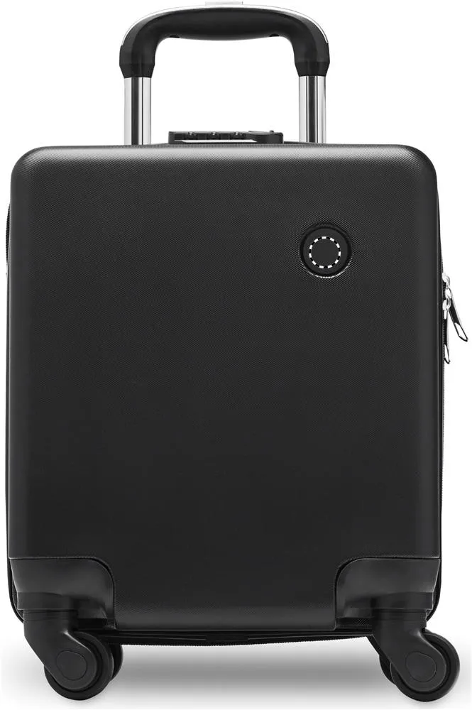 Trolley de ABS de 14 polegadas sob o assento com 4 rodas. Tem um bolso interno com zíper. Incluindo uma trava combinada e estrutura de tubo duplo.Trolley ABS
