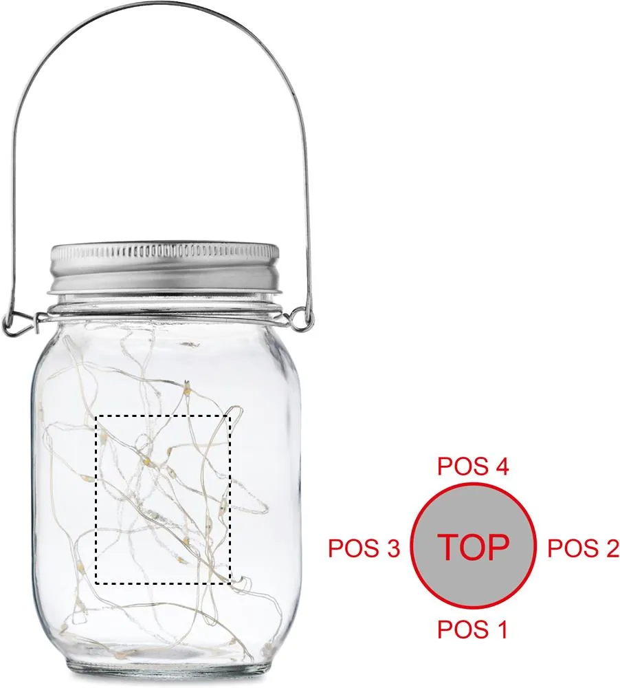 Lâmpada solar de exterior em frasco de pedreiro com 20 luzes de cordel de fada LED. Cabide em cima. Aprox. 5 horas de trabalho. Bateria de 300 mAh NI-MH incluída. IP44.Candeeiro solar de exterior