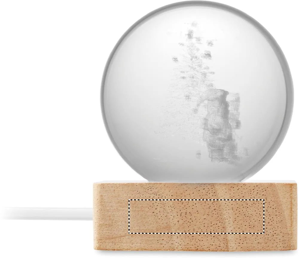 Ornamento em forma de bola de Natal com luz LED (100 lúmens) numa base de madeira de borracha. Inclui um cabo de carregamento USB (90 cm).Bola de vidro LED de Natal