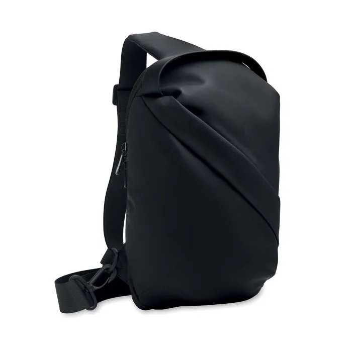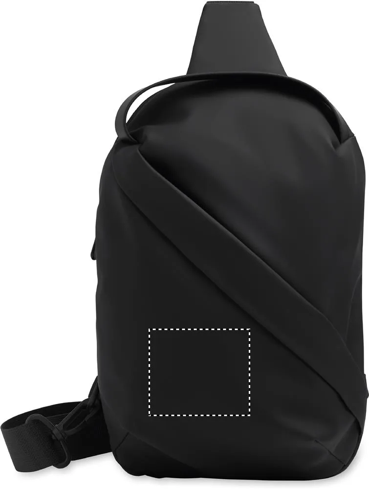 Saco transversal em PU macio com costas almofadadas e forro em RPET 210D. Um grande compartimento principal com bolso frontal com fecho de correr.Bolsa cruzada ao peito em PU