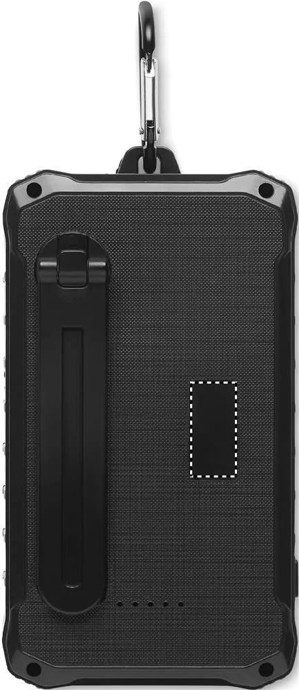 Power Bank solar de 8000 mAh com dínamo de manivela manual. Inclui 1 luz LED e 100 lúmenes. Entrada/saída tipo C, 2 saídas USB-A. Corrente de saída DC 5V/2.1A.Power Bank dínamo 8000 mAh