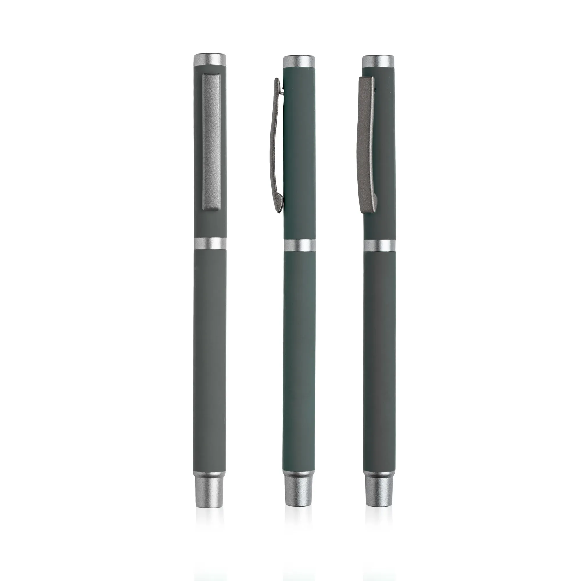 Roller em metal com toque de borracha. Roller moderna com corpo emborrachado e a resistência e qualidade de uma roller de metal. Com uma coleção de cores completa, esta roller alia-se a qualquer campanha de brindes, com a gravação da sua marca. Sistema de tampa e escrita azul.Roller em metal com toque de borracha