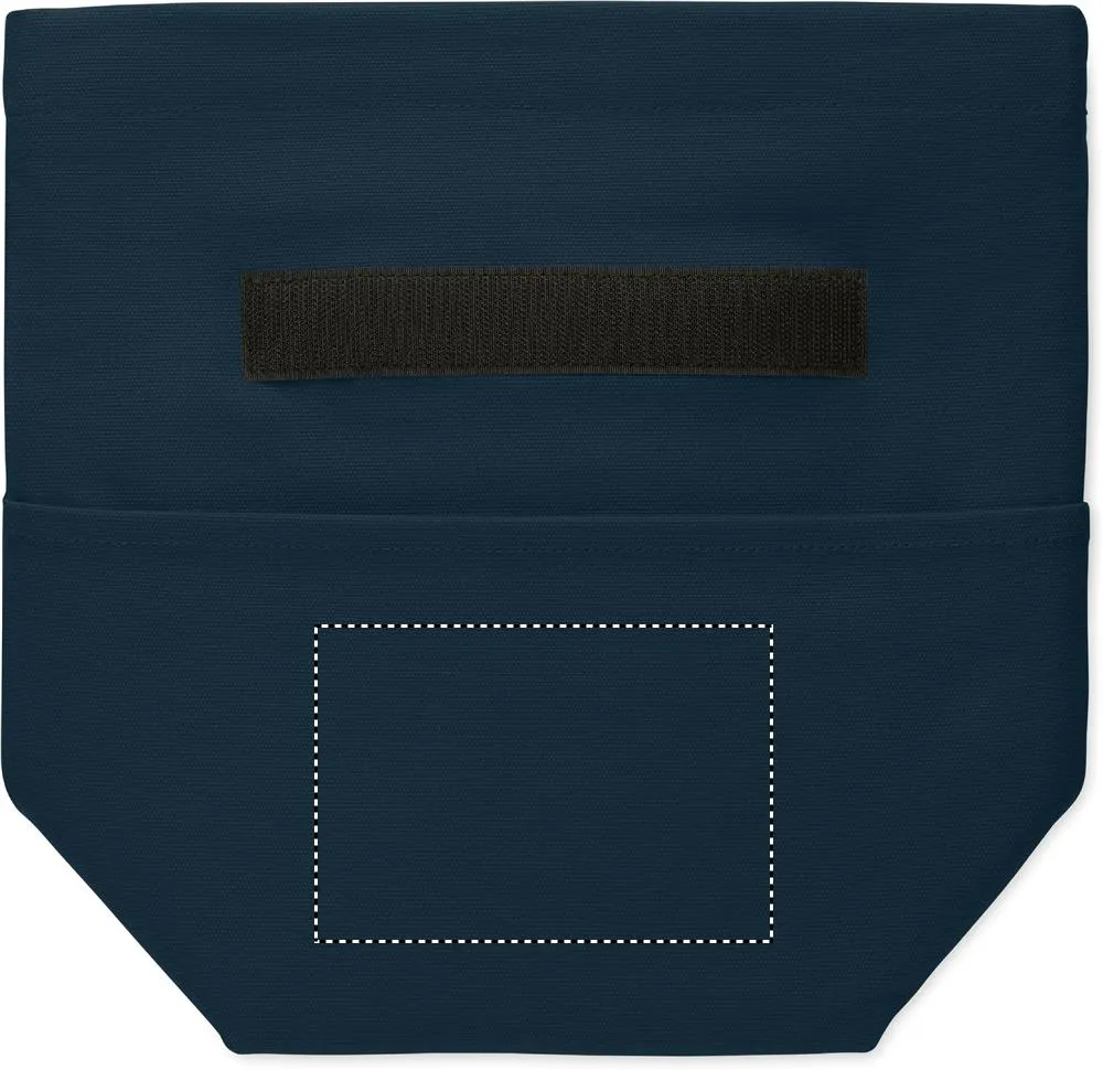 Lancheira térmica de almoço com gancho de enrolar e fecho de laço. Algodão reciclado (70% algodão reciclado, 30% poliéster reciclado). Isolamento: Espuma de PE de 3mm com PEVA de 12C.Saco térmico algodão reciclado