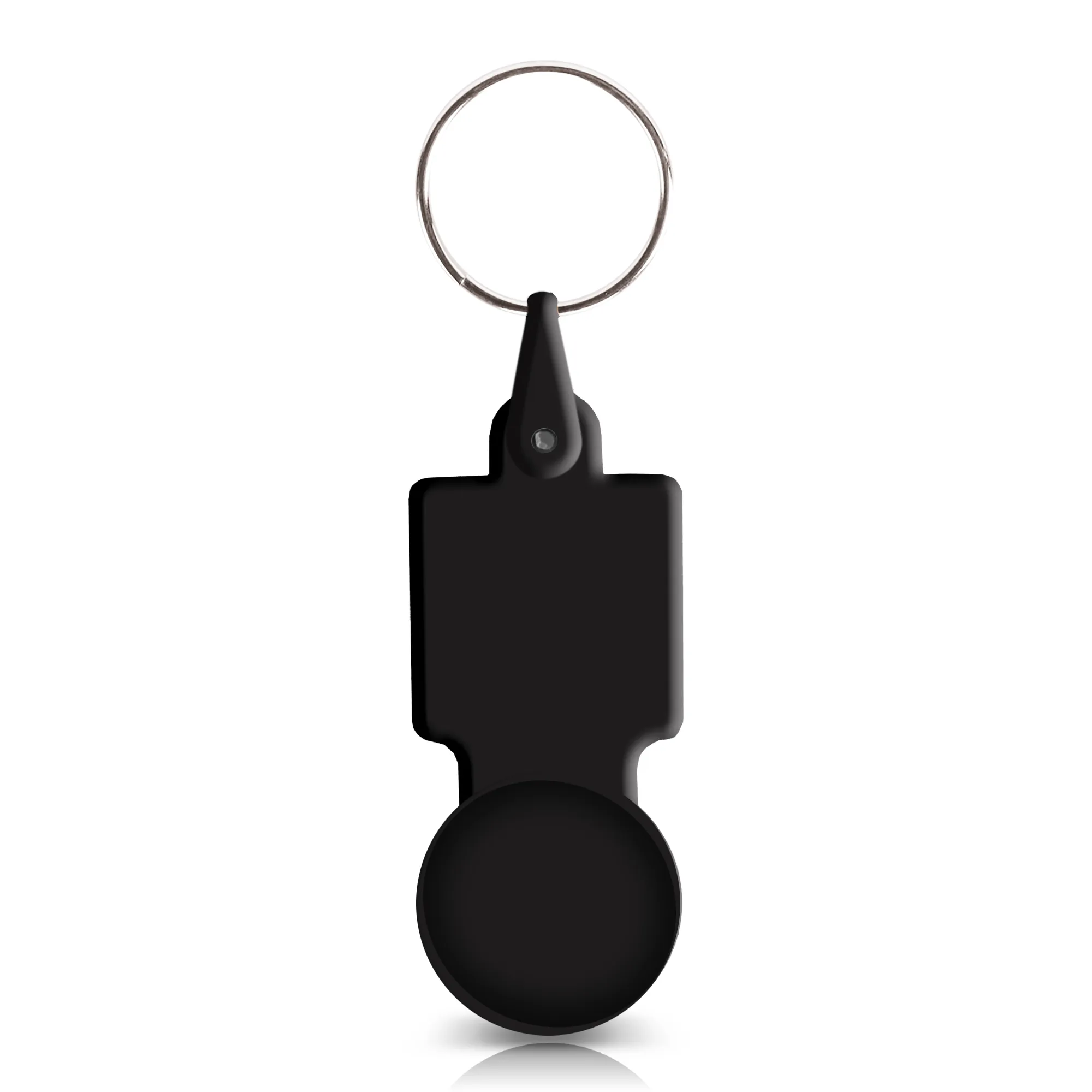 Porta-chaves com ficha para carrinho, plástico PS. Muito útil para compras de supermercado, este brinde tem uma face que pode personalizar com o seu logo.Porta-chaves com ficha € 0,50 para carrinho, plástico PS