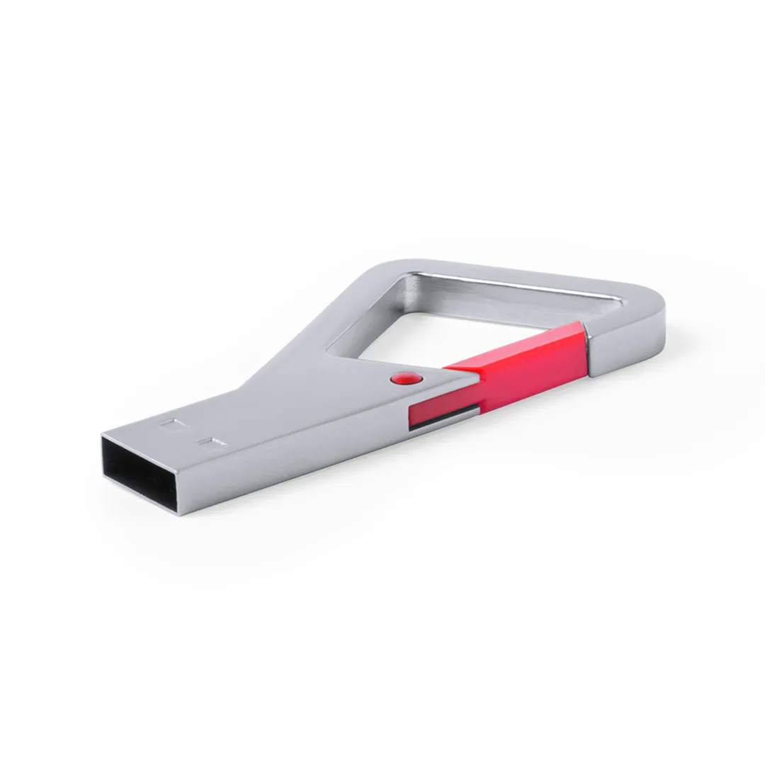 Memória USB de capacidade de 8 GB em metal e design original com fecho de mosquetão numa variedade de cores. Apresentado em caixa de metal individual com janela e interior recortado em esponja macia.Metal