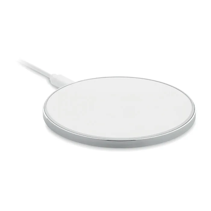 Carregador sem fio de alumínio 10W e vidro no topo. Ligue-o ao computador, ponha smartphone e deixe-o carregar. Saída: DC 9V/1.1A. Compatível com últimas versões Android, iPhone® 8, X e mais recentesCarregador vidro sem fio 10W