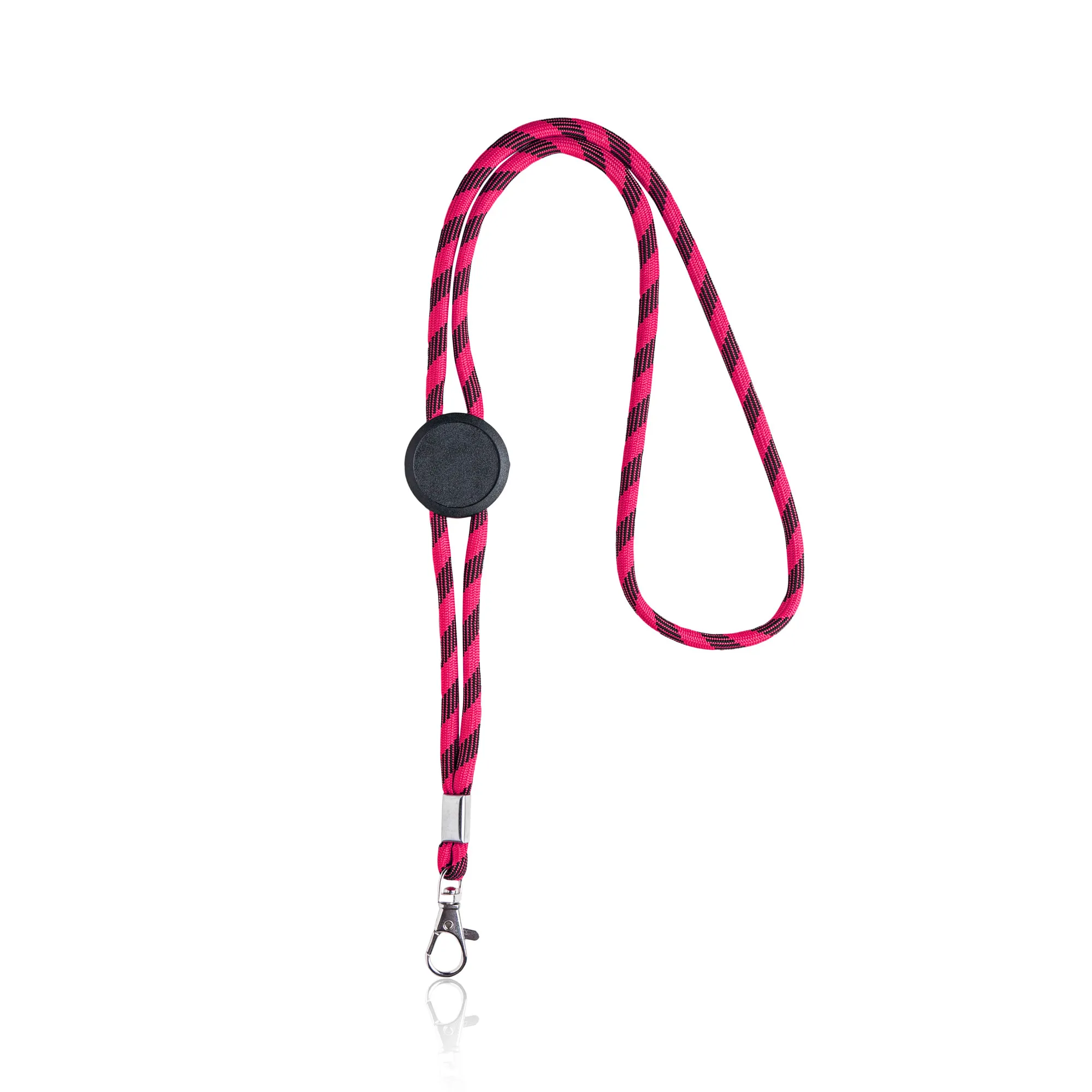 Lanyard tubular, em RPET, com ajustável e mosquetão.Esta lanyard , amiga do ambiente, é fácil de personalizar no ajustável quer seja por recurso à tampografia quer com a utilização de uma resina ( 370487)Lanyard tubular em RPET, ajustável