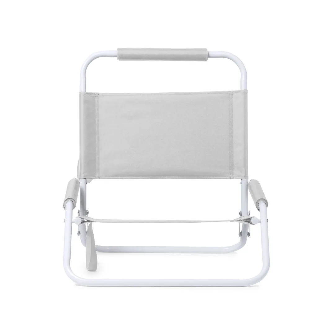 Cadeira dobrável leve e resistente, com estrutura metálica lacada em cor branco. Encosto e assento em poliéster 600D, com acolchoado em espuma a condizer no repousa braços e repousa cabeças. Com pega de transporte a condizer e disponível numa variada gama de cores.Poliéster 600DDobrável