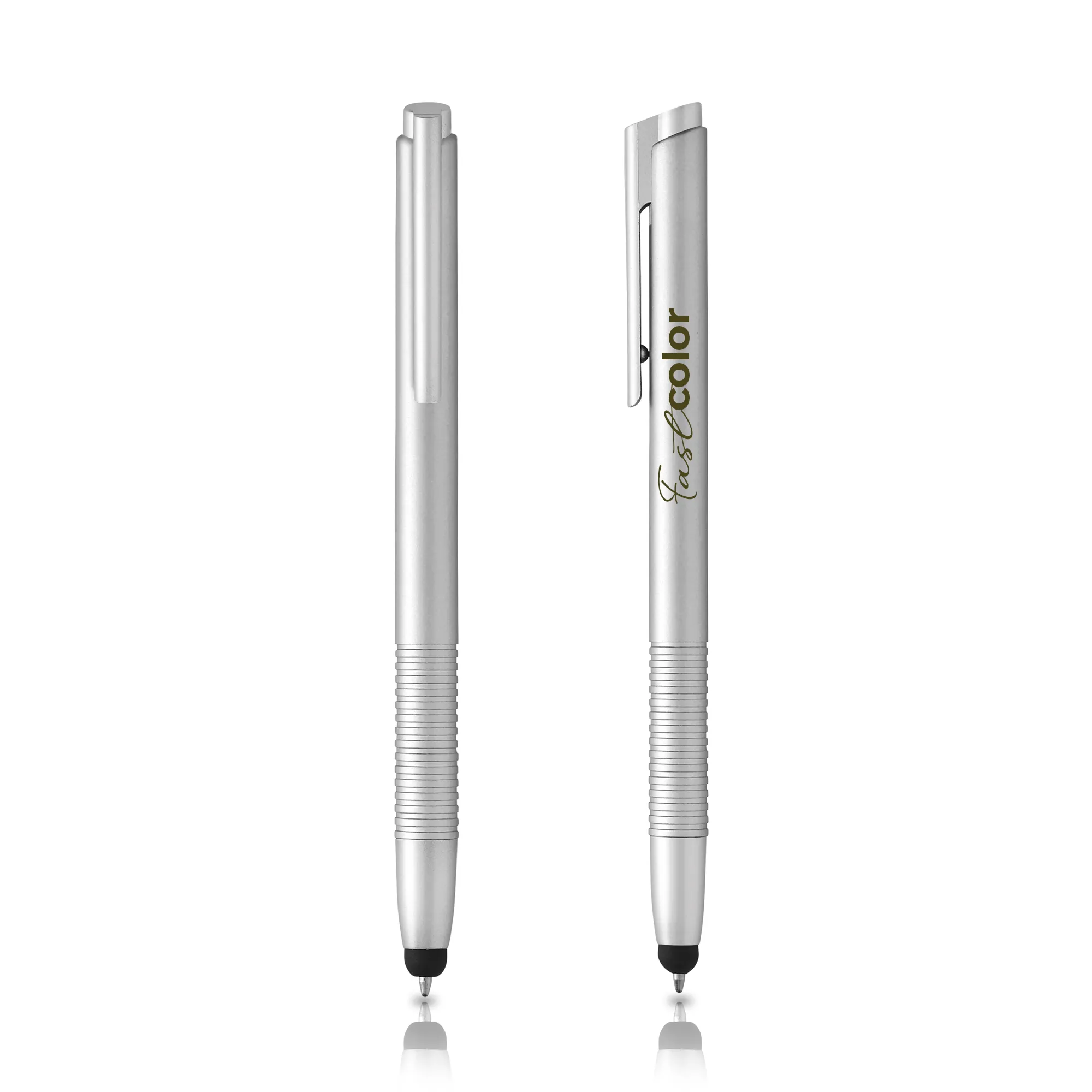 Esferográfica de plástico e touch. Escrita azul e sistema pulsar. Nesta esferográfica pode encontrar detalhes prateados aliados a um corpo colorido com um toque de textura. Touch incluído.Esferográfica em plástico, com touch