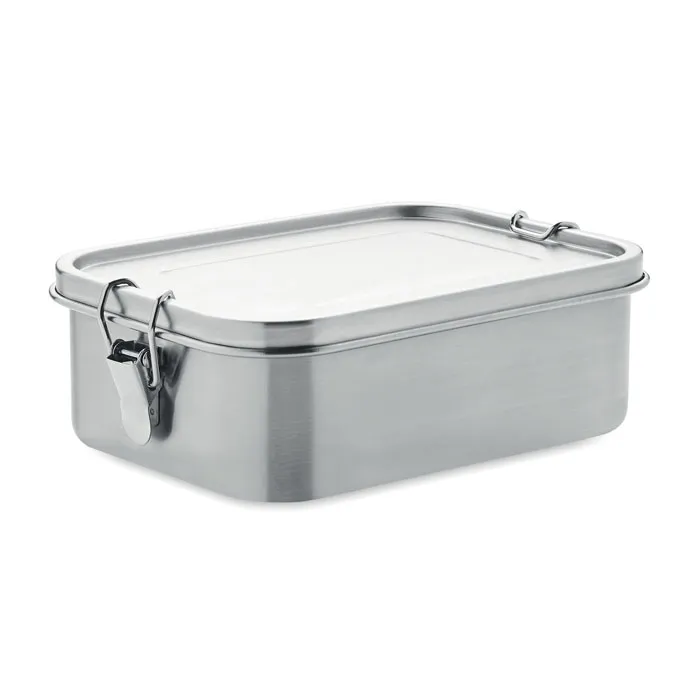 Lancheira em aço inoxidável com fivelas laterais fortes e seguras. Incluindo divisória interior. Capacidade: 1200 ml.Caixa almoço em aço inoxidável