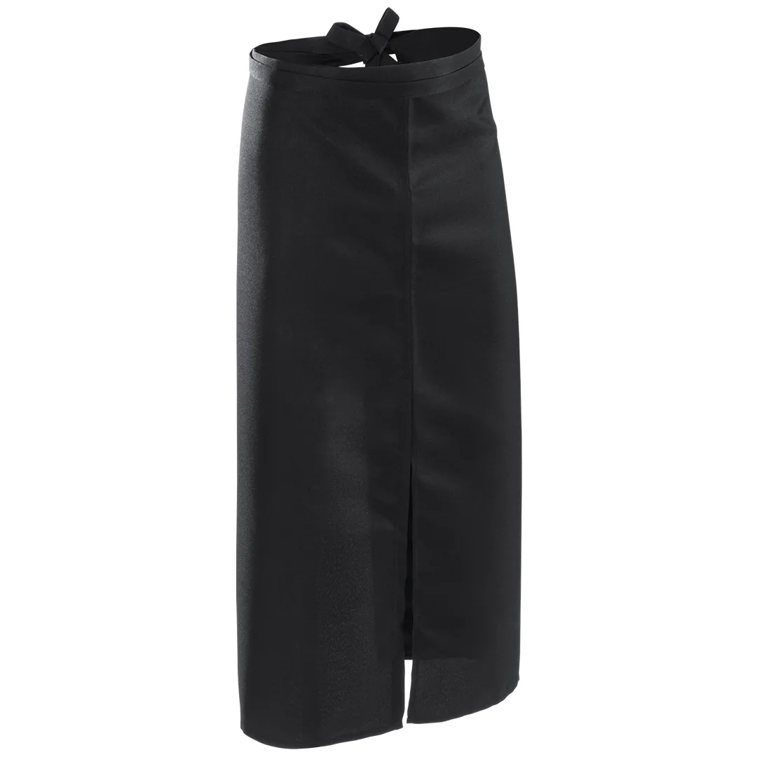 Avental para cintura fabricado em resistente poliéster e de elegante cor preta. De corte abaixo do joelho e com fitas de ajuste.100% Poliéster