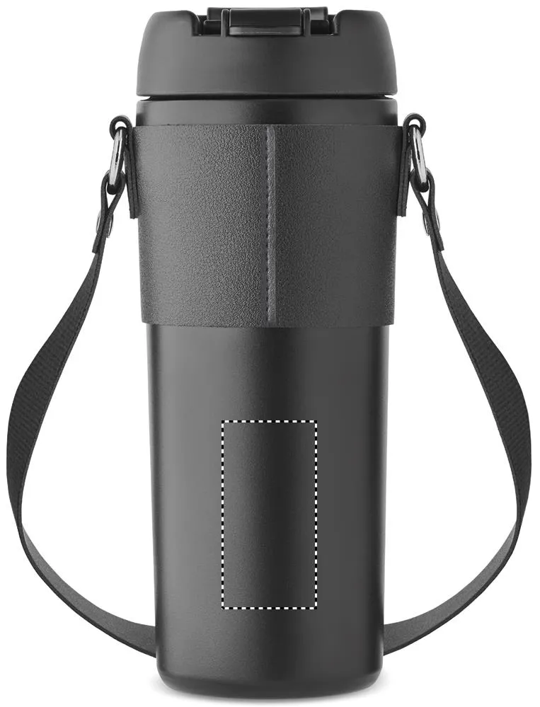 Copo de parede dupla em aço inoxidável revestido em pó com tampa em PP (tampa de palha 2 em 1) e com alça de transporte em PU. Sem fugas. Capacidade: 700 ml.Copo de parede dupla 700 ml