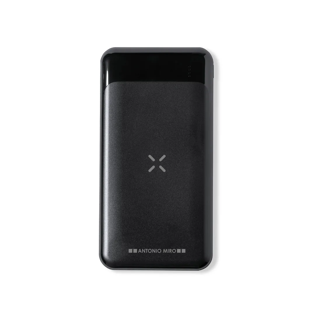 Bateria auxiliar externa de Antonio Mirã, em elegante acabamento fosco preto, com logotipo da marca no invólucro. Feito em ABS resistente, com capacidade de 5. 000 mAh e carregador sem fio integrado 5W. 2 saídas USB, com conexão de entrada/saída de tipo C e entrada micro USB. Compatível com dispositivos equipados com a tecnologia de carregamento sem fio Qi. Indicador de status de carregamento do LED, com o cabo de carregamento do tipo C incluído. Apresentado em uma caixa preta individual com logotipo Antonio Miro, incluindo manual de instruções em inglês e espanhol. usb c entrada/saída: 5V 2. 4AUSB Saídas: 5V DC 2. 4Amicro entrada USB: 5V 2ATHE Capacidades mostradas em todas as nossas baterias auxiliares externas são reais,Todos eles incorporam baterias de grau A não recicladas, com uma vida útil de pelo menos 500 ciclos de carregamento e cumprindo os regulamentos de CE. Além disso, são fabricados de acordo com os padrões do ROHS e, em conformidade com os seguintes requisitos de segurança: Banco de energiaSistema de proteção sobre sobrecarga. com Sistema de proteção de descarga completa, que aumenta a durabilidade do sistema de bloqueio de potência.Sem fios 5W. 5000 mAh. 2 Saídas USB e 1 Tipo C. Entrada Micro USB e Tipo C