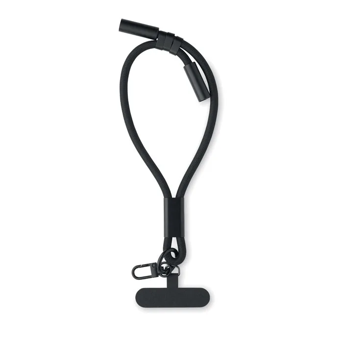 Pulseira cabo de dados e de carregamento da 60 W tipo C para tipo C em RPET com suporte para o cabo do telemóvel e clipe.Pulseira para carregar celular